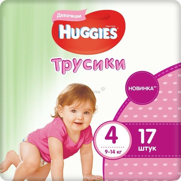 Трусики-подгузники Huggies Pack размер 4, 9-14 кг, 17 шт, для девочек