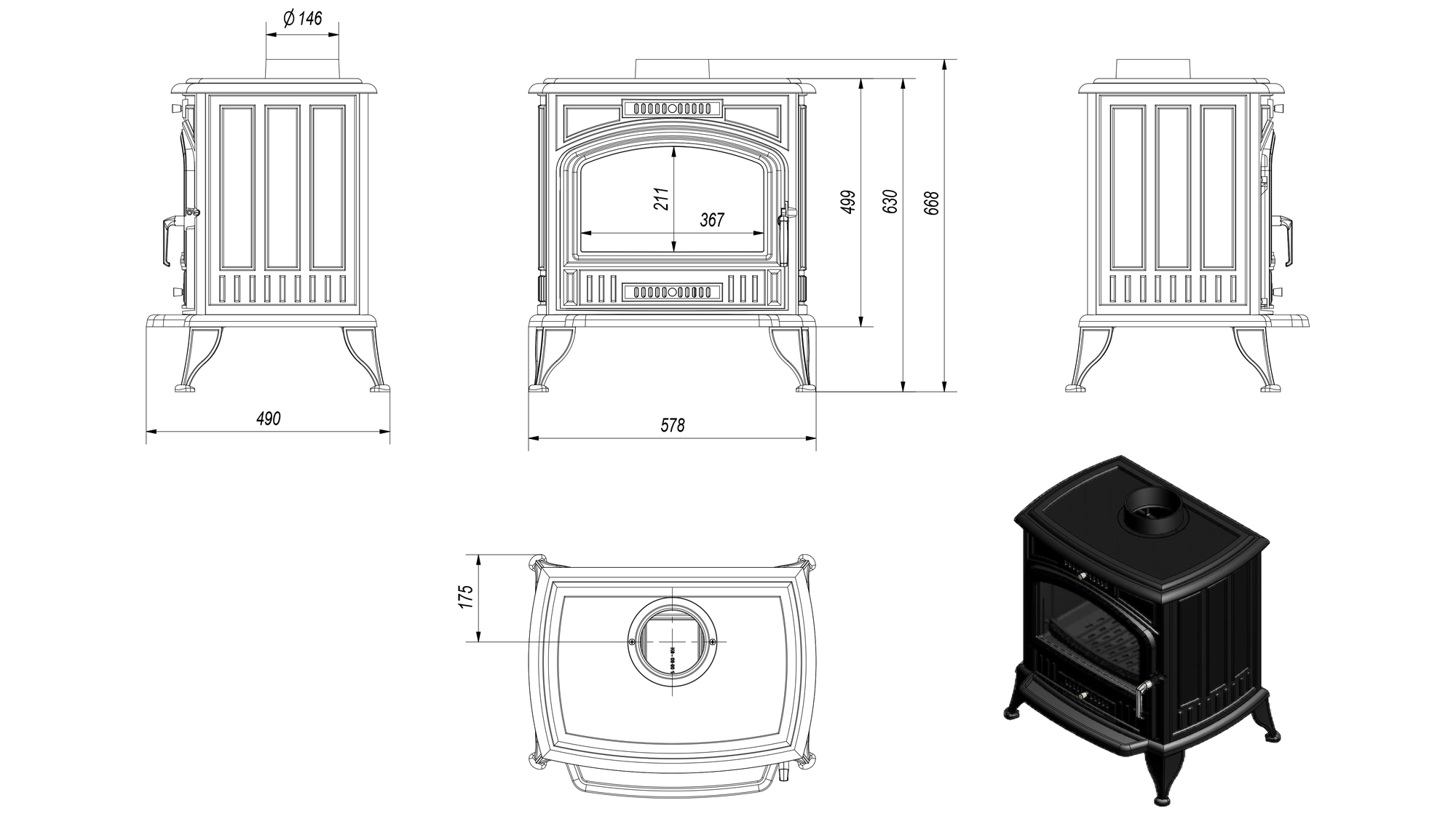 Печь-камин чугунный KOZA/K6/150