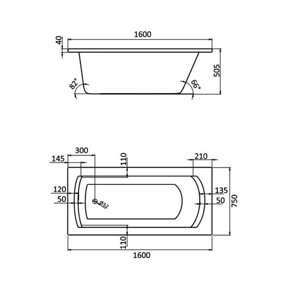 Ванна прямоугольная Santek акриловая монако XL 1600х750 белая арт. 1WH111978, (без монтажного комплекта/ножек)