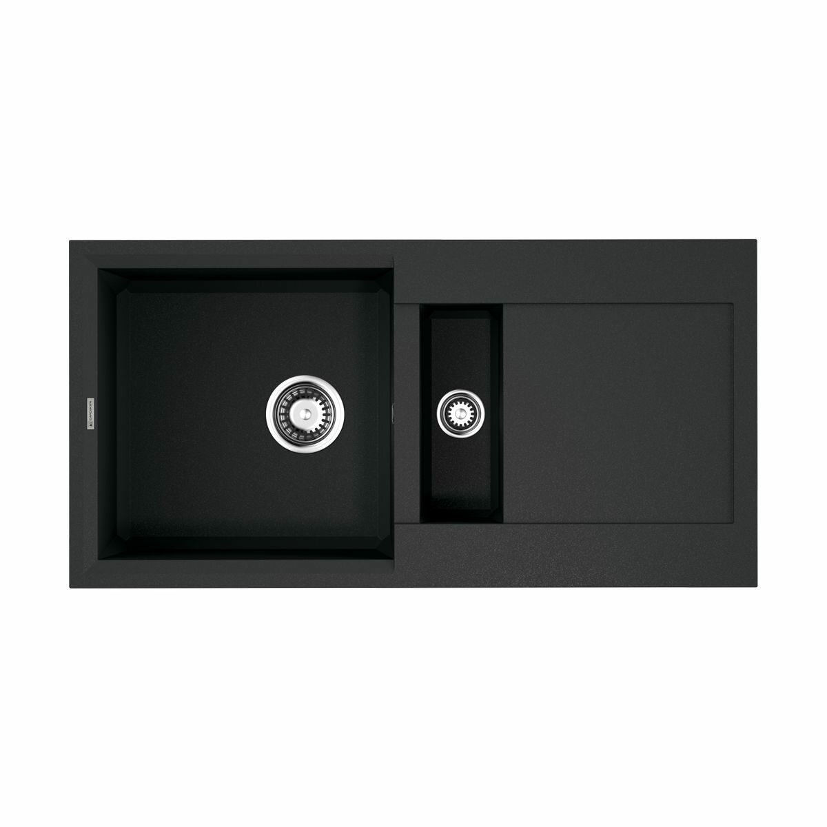 Кухонная мойка двухчашевая с крылом OMOIKIRI Sakaime 86-2-BL, искусственный гранит/черный