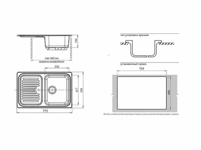 | Отзыв: | отличная мойка только продавец увел фрезу для отверстия под кран. |