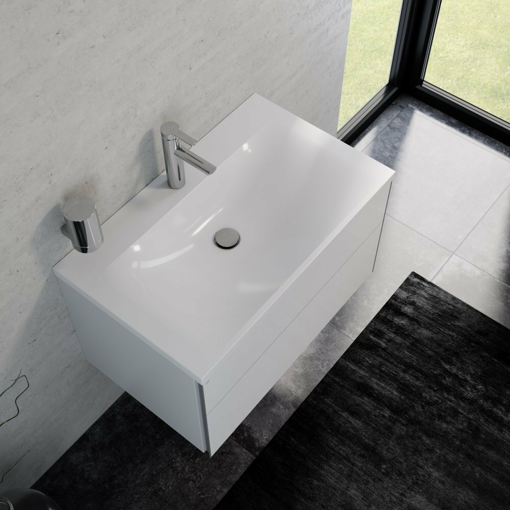 Keuco 34061318001 Royal Reflex Умывальник из минерального литья 800х490х80 мм, для смесителей на 1 отверстие в комплекте с системой слива-перелива CLOU