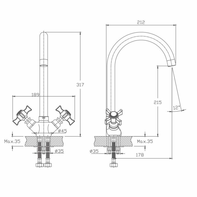 Смеситель Haiba HB4624, для кухонной мойки, двуручковый, с высоким поворотным изливом