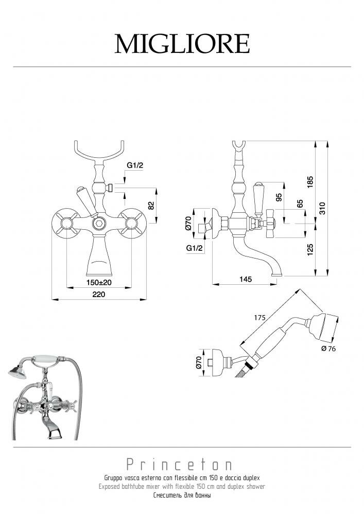 Смеситель для ванны/душа Migliore PRINCETON настенный, бронза ML.PRN-802.BR интересное: