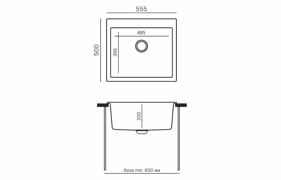 Мойка для кухни врезная Tolero / Толеро Classic R-111-911 гранит цвет черный размер 555×500мм глубина 200мм / раковина для кухни гранитная