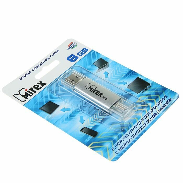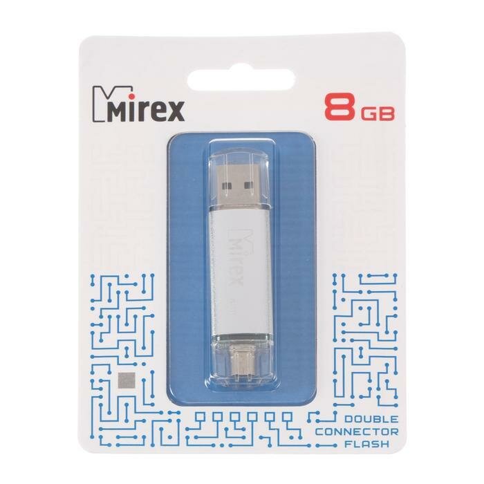 Купить Double Connector Flash Mirex SMART SILVER 8GB, флешка Micro USB для смартфона и компьютера, поддержка OTG