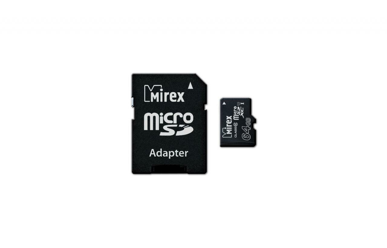 Карта памяти microSDXC Mirex 64 Гб класс 10 UHS-I - с адаптером SD
