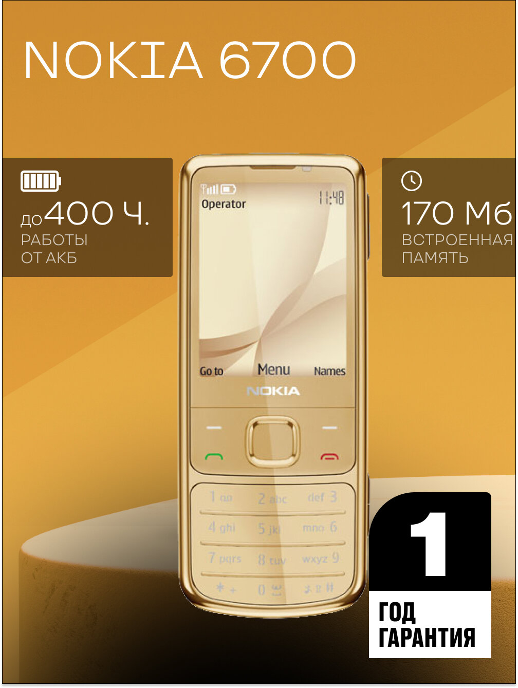 Nokia 6700 - кнопочный мобильный телефон с Bluetooth, емкостью аккумулятора до 1 000 мАч
