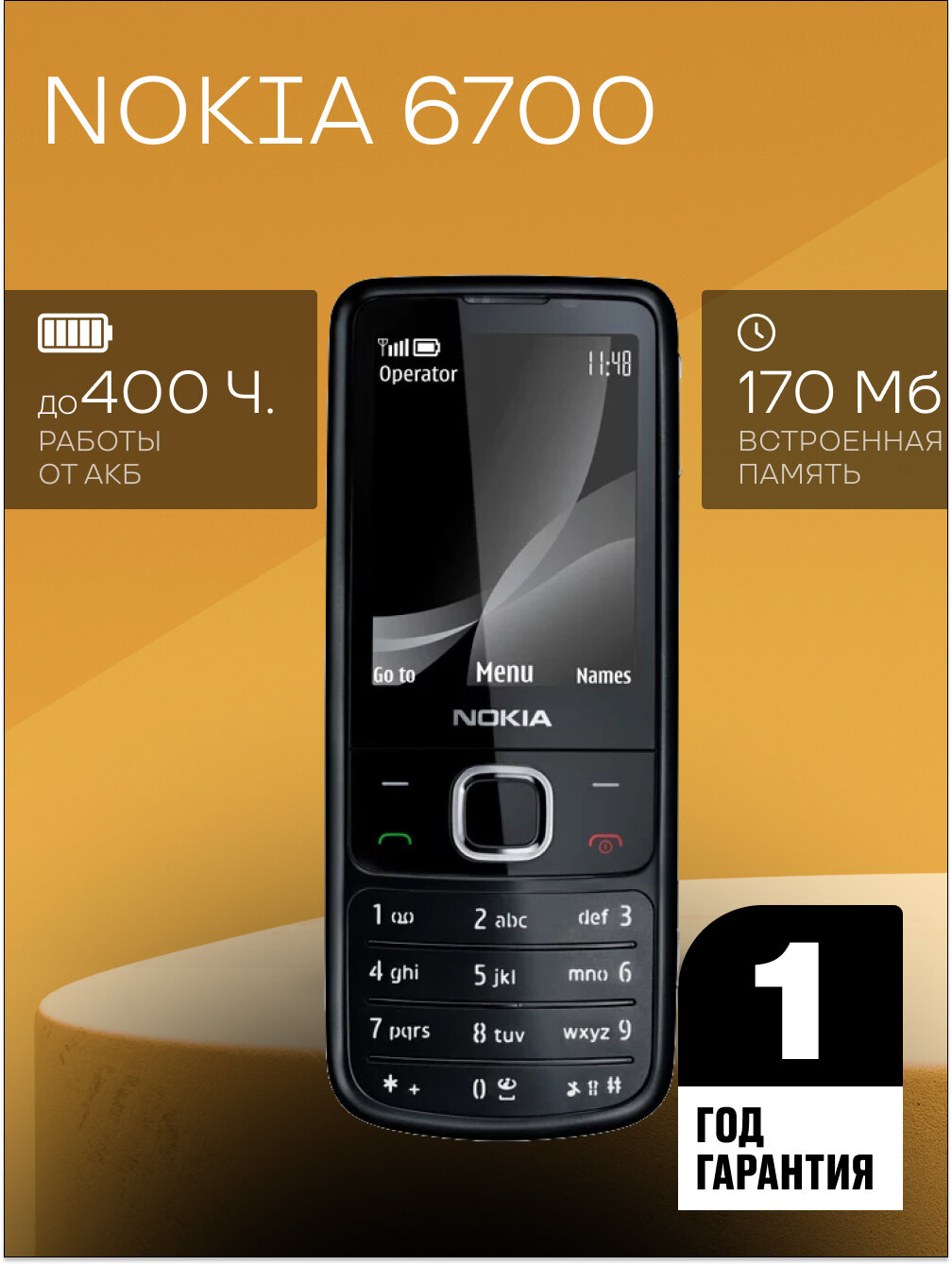 Nokia 6700 - кнопочный мобильный телефон с Bluetooth, емкостью аккумулятора до 1 000 мАч