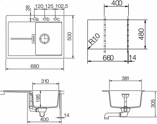 Врезная гранитная кухонная мойка 40 см, Horizont 40D Small Schock Шок
