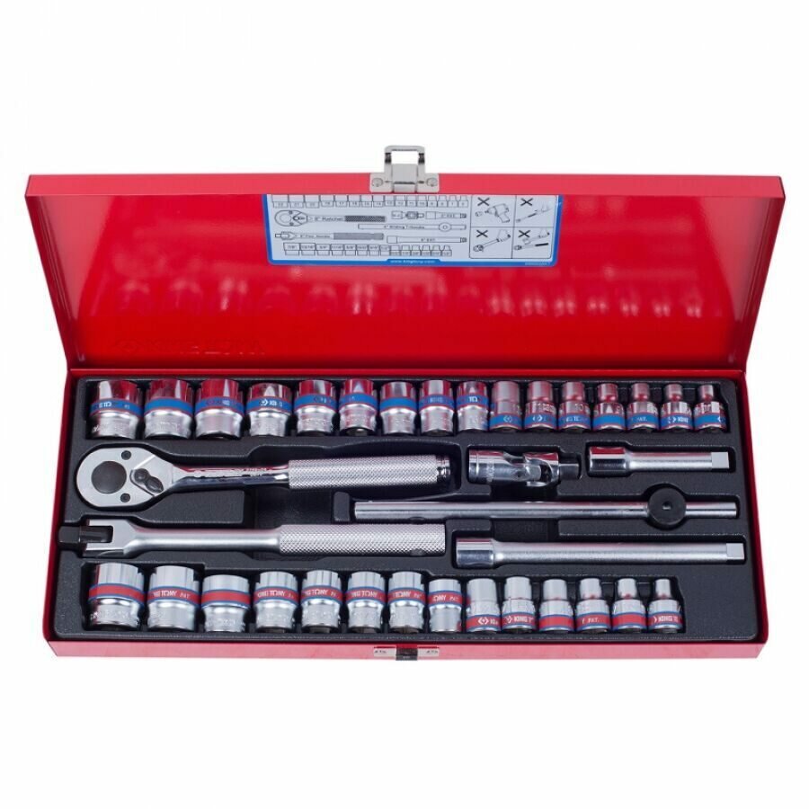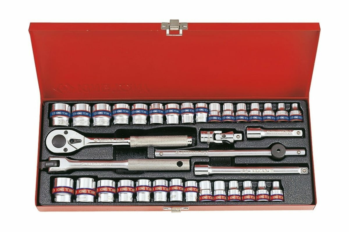 Купить Набор двенадцатигранных торцевых головок с принадлежностями 3/8", 6-22мм, 1/4"-13/16", 36шт KING TONY 3036CR