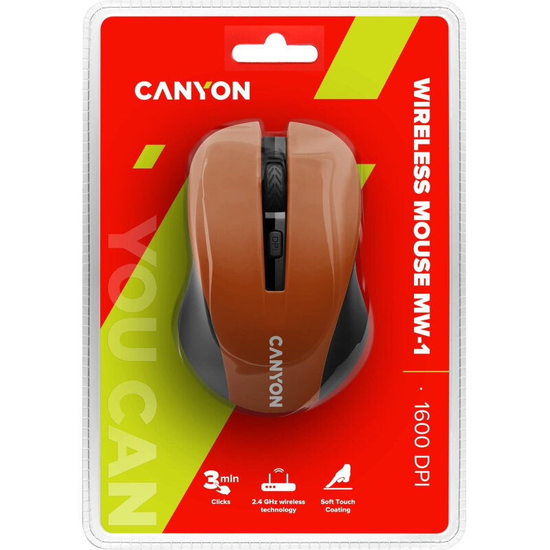Беспроводная мышь Canyon MW-1, 800/1000/1200DPI, 3 кнопки+колесо прокрутки, оранжевый