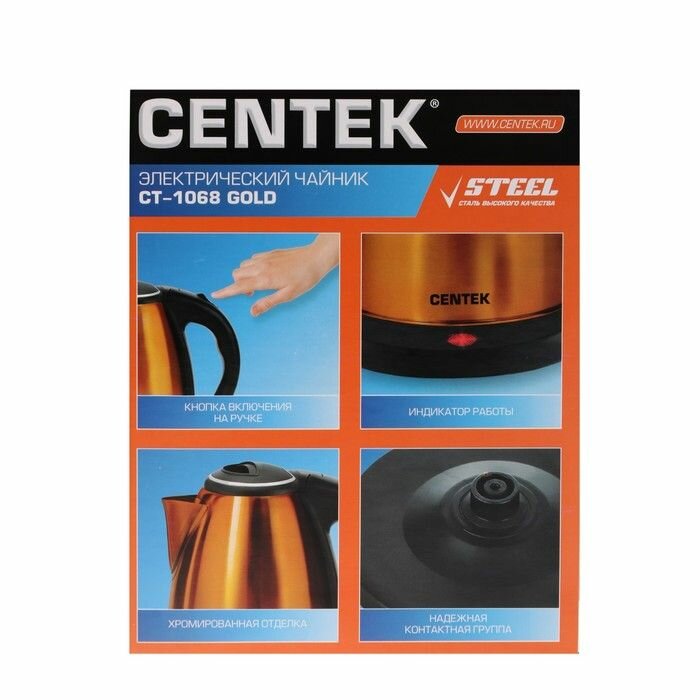 Чайник электрический Centek Ct-1068, 2 л, 2000 Вт, золотой Centek 2499047 .