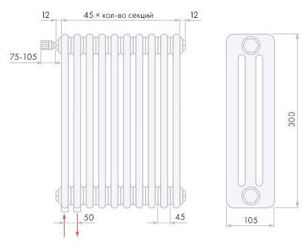 Радиатор секционный Arbonia 3030/12 нижнее левое подключение № 69 твв 1/2 RAL 9016 Белый