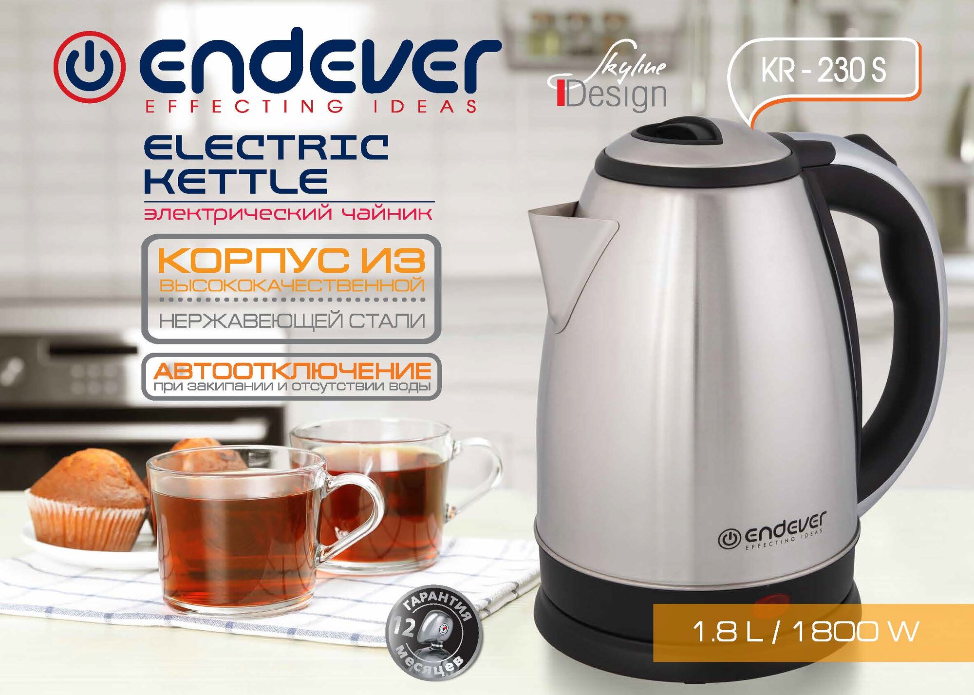 Чайник Endever Skyline KR-230S /1,8л., зеркальная сталь, 1800Вт/