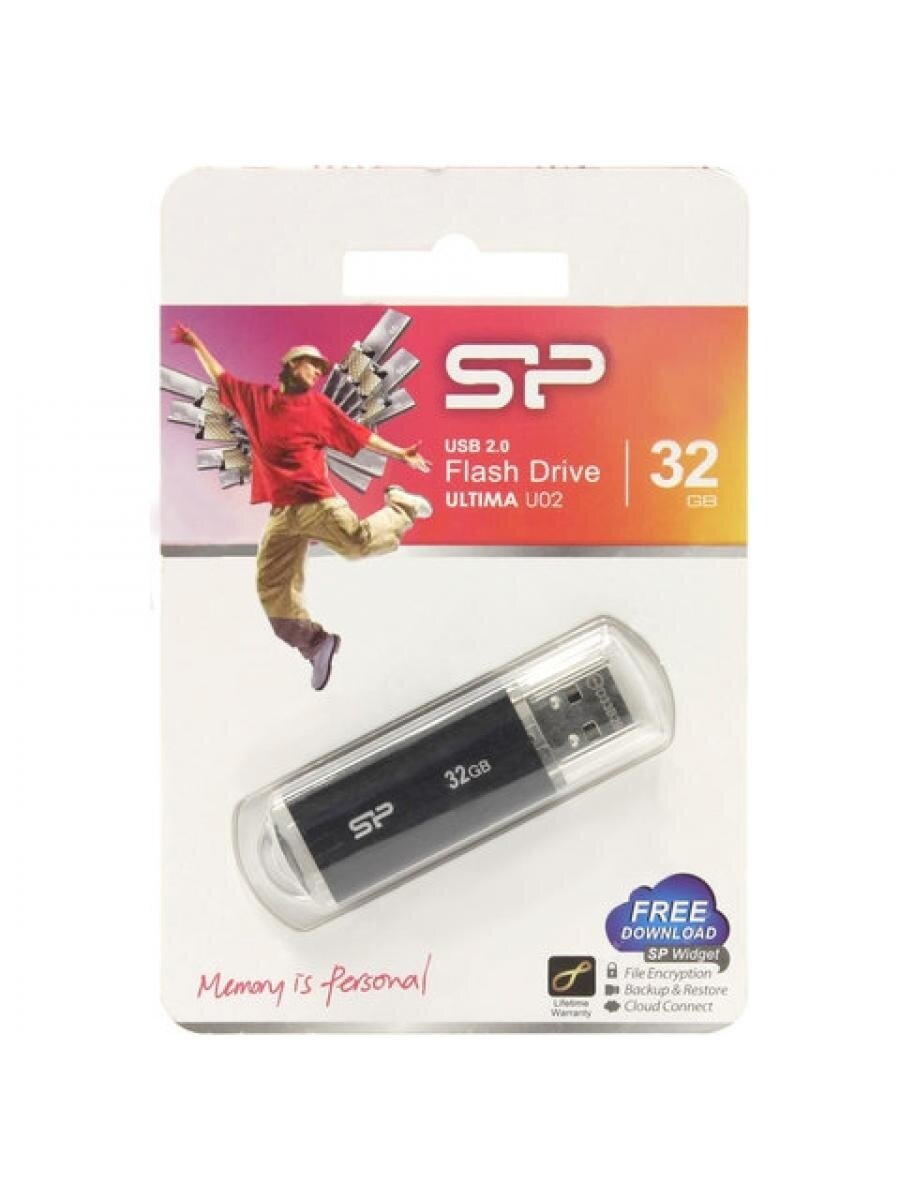 Флеш-память Silicon Power Ultima U02, 32Gb, USB 2.0, чер, SP032GBUF2U02V1K, 1 шт.