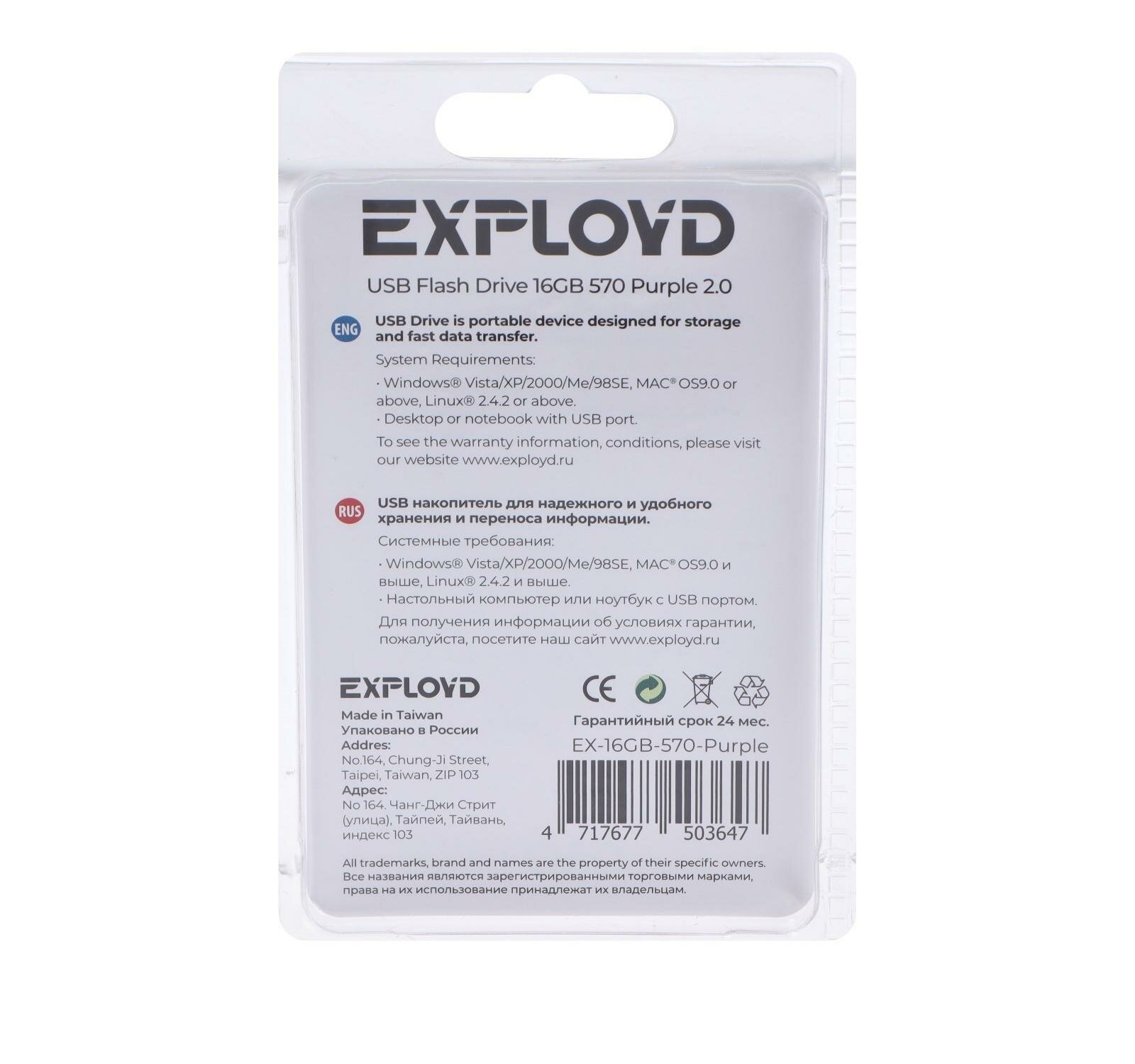 Купить Exployd Флешка Exployd 570, 16 Гб, USB2.0, чт до 15 Мб/с, зап до 8 Мб/с, фиолетовая