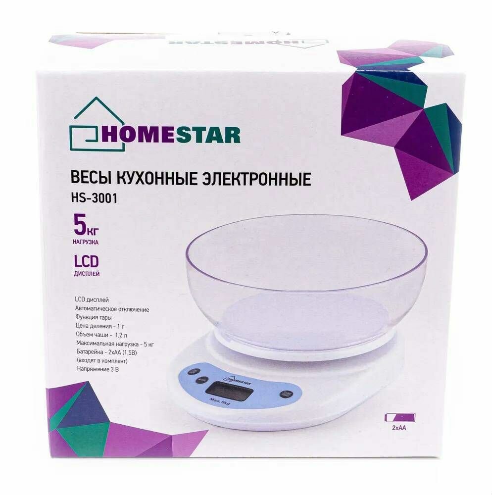 Весы кухонные HOMESTAR HS-3001, электронные, до 5 кг, белые