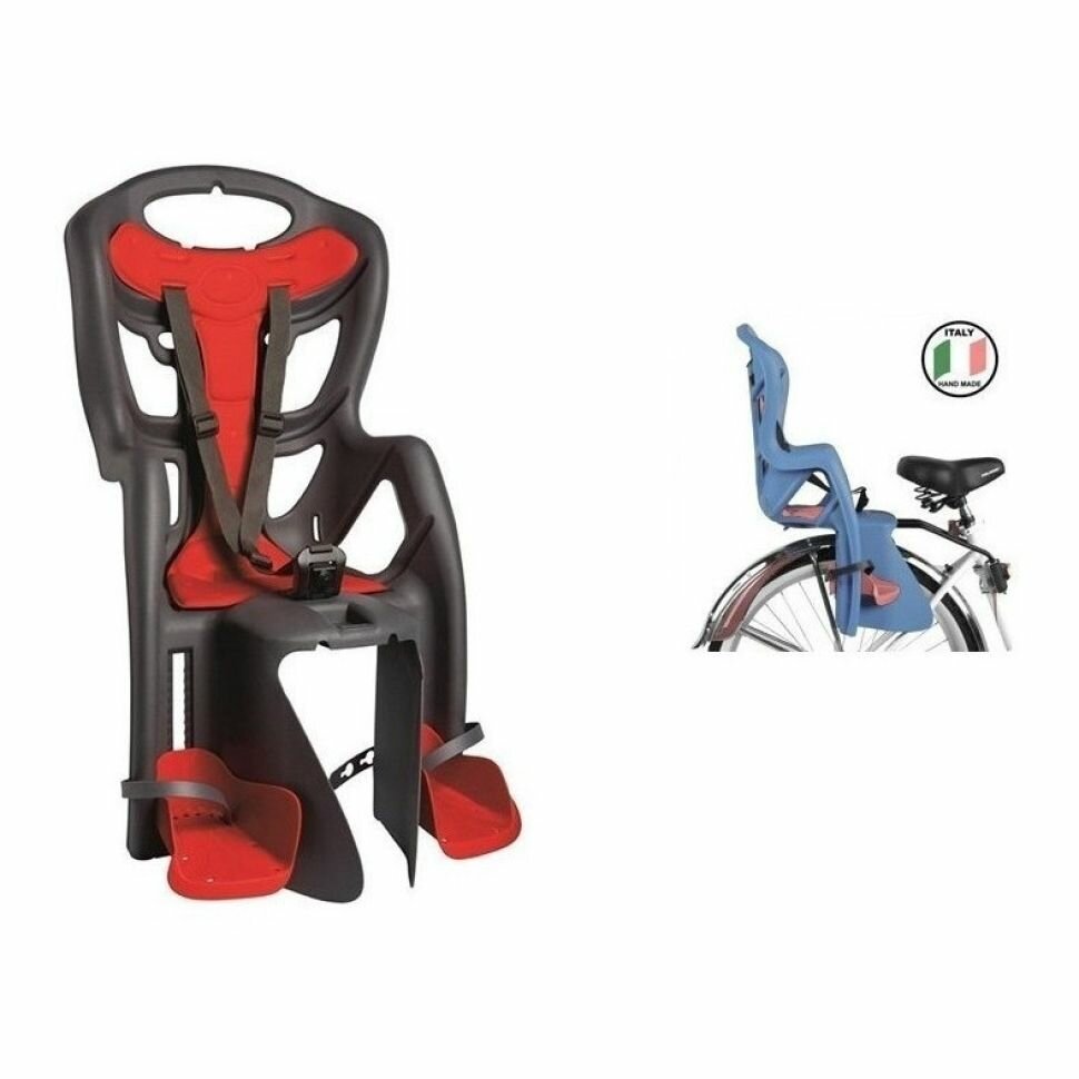 Детское заднее велокресло Bellelli Pepe Standard, на велосипед 29", цвет: тёмно-серое с красной вставкой, вес до 22 килограмм