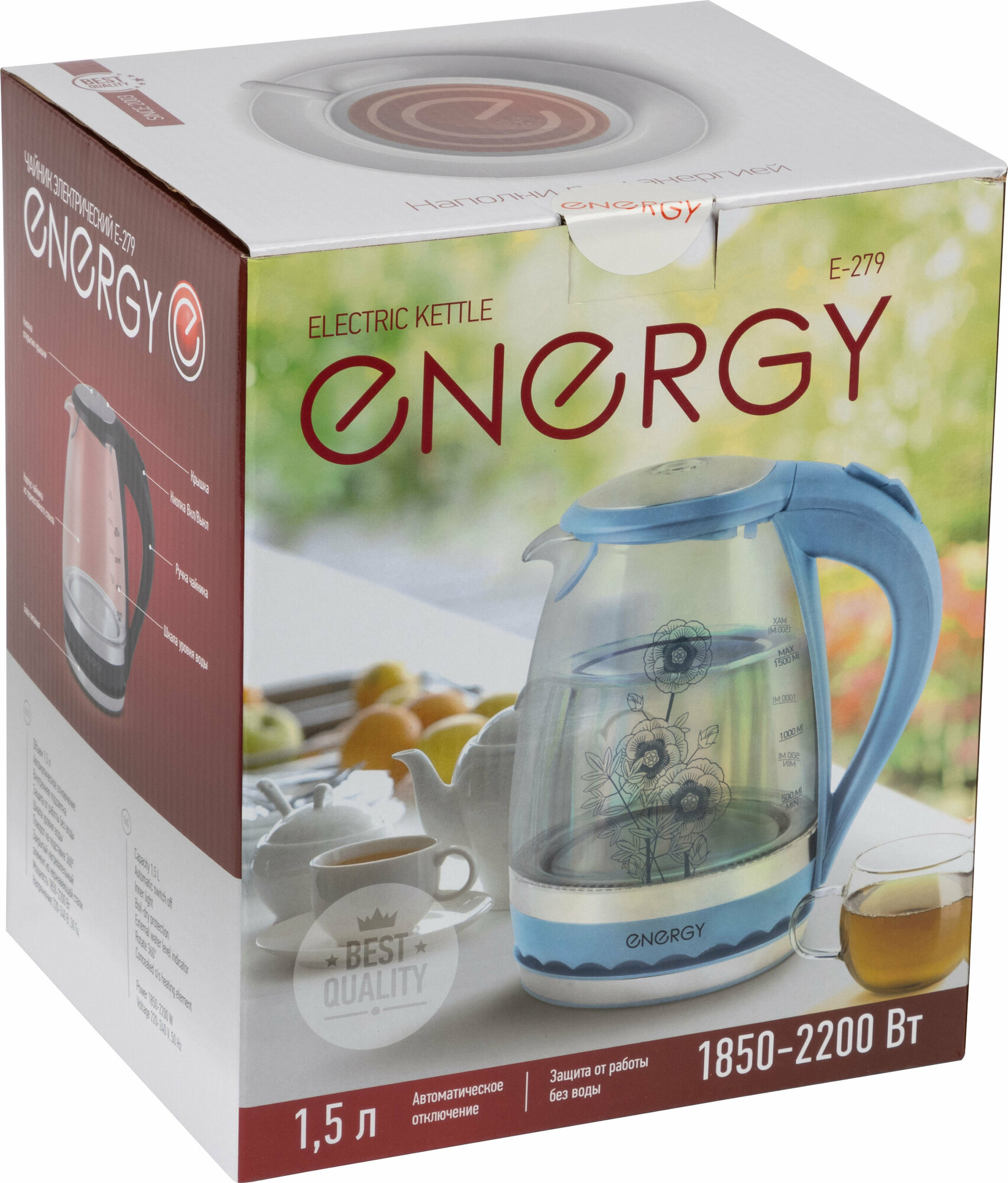 Купить Energy Чайник электрический ENERGY E-279, стекло, 1.5 л, 2200 Вт, голубой