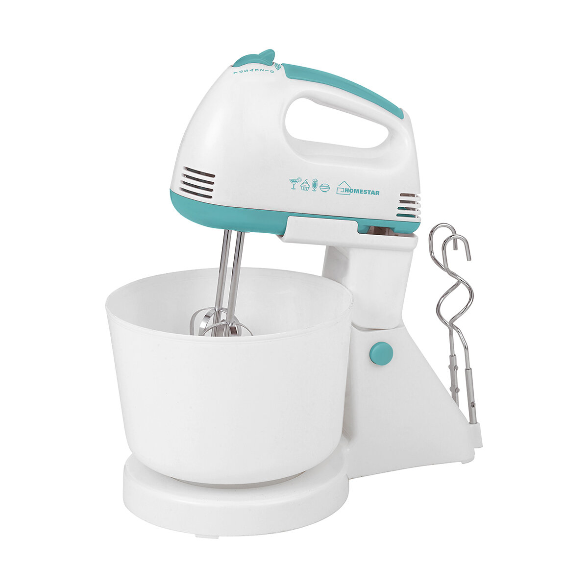 Миксер HOMESTAR HS-2006, стационарный, 150 Вт, 2 л, 7 скоростей, бело-бирюзовый