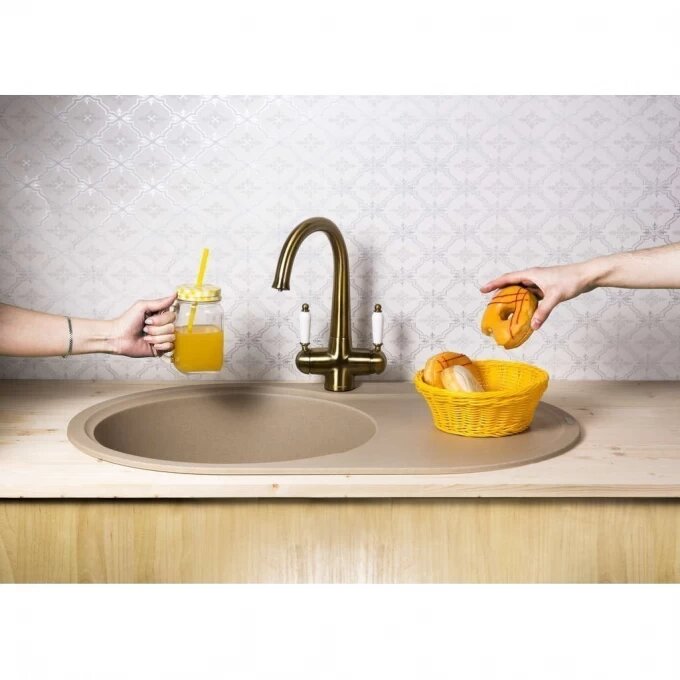 Кухонная мойка Карельский камень модель 150 (575*470) Q6 Слоновая кость