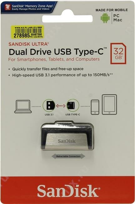 СохранитьUSB Flash Drive 32Gb - SanDisk Ultra Dual SDDDC2-032G-G46 интересное: