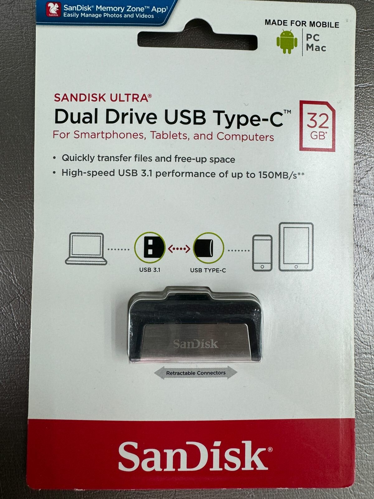 USB 3.1 32GB SanDisk Dual Drive (Type C + Type A) OTG