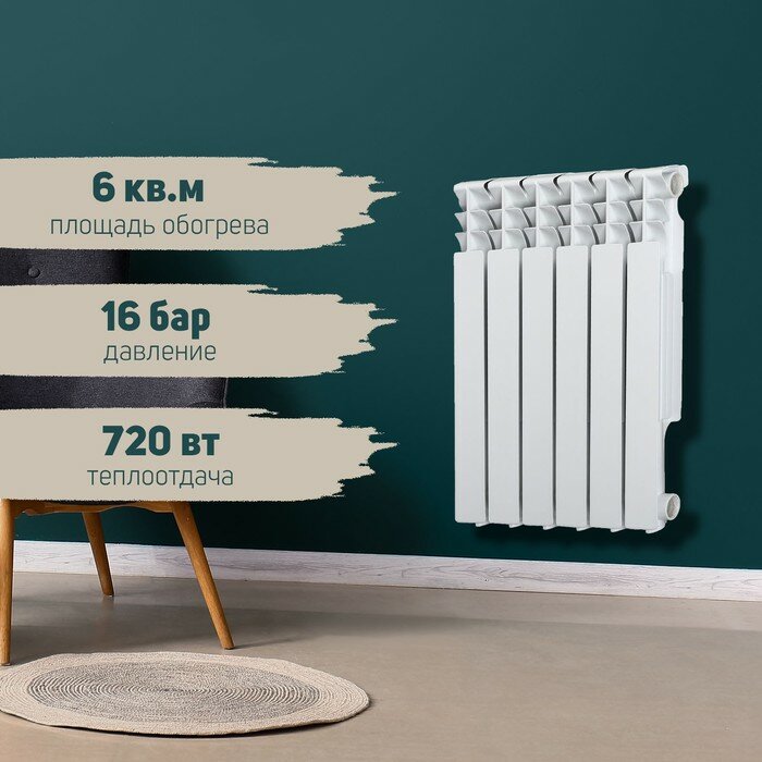 Алюминиевый радиатор Tropic 6 секций 500x80 мм, 720 Вт