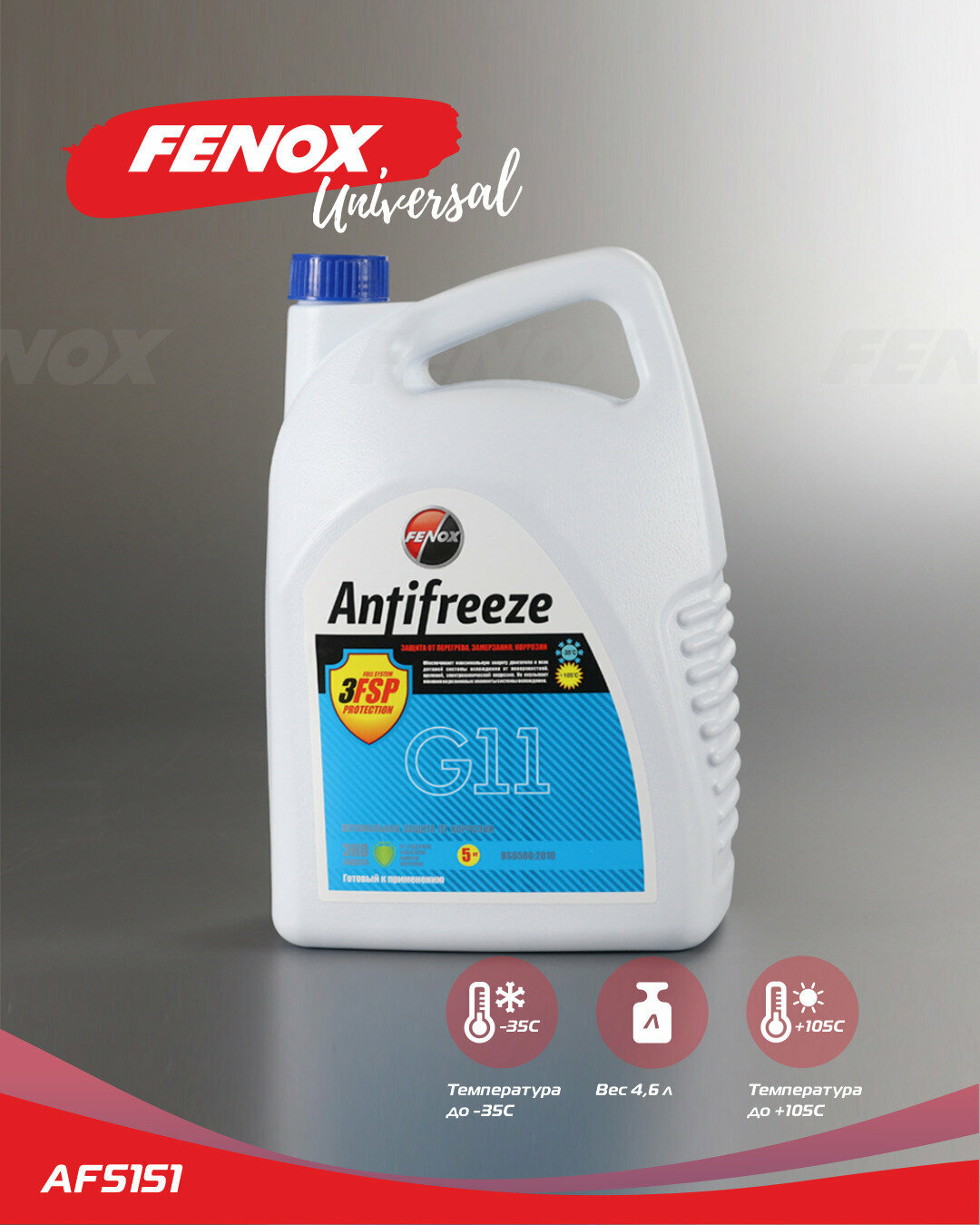 Антифриз Fenox Universal G11 Готовый Синий 4,2 Л Af5151 Universal (G11) Синий 4,2 Л FENOX арт. AF5151
