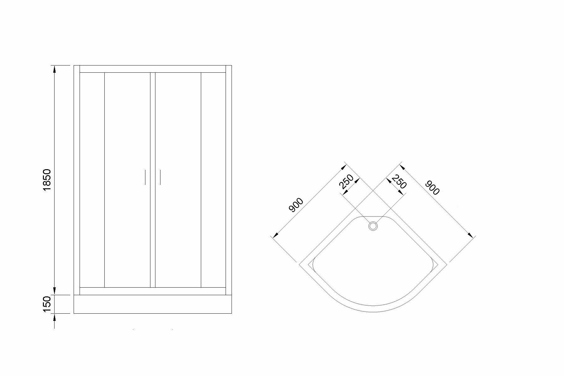 Royal Bath Душевой уголок RB90HK-C-CH 90 х 90 x 198 см четверть круга, стекло матовое, хром