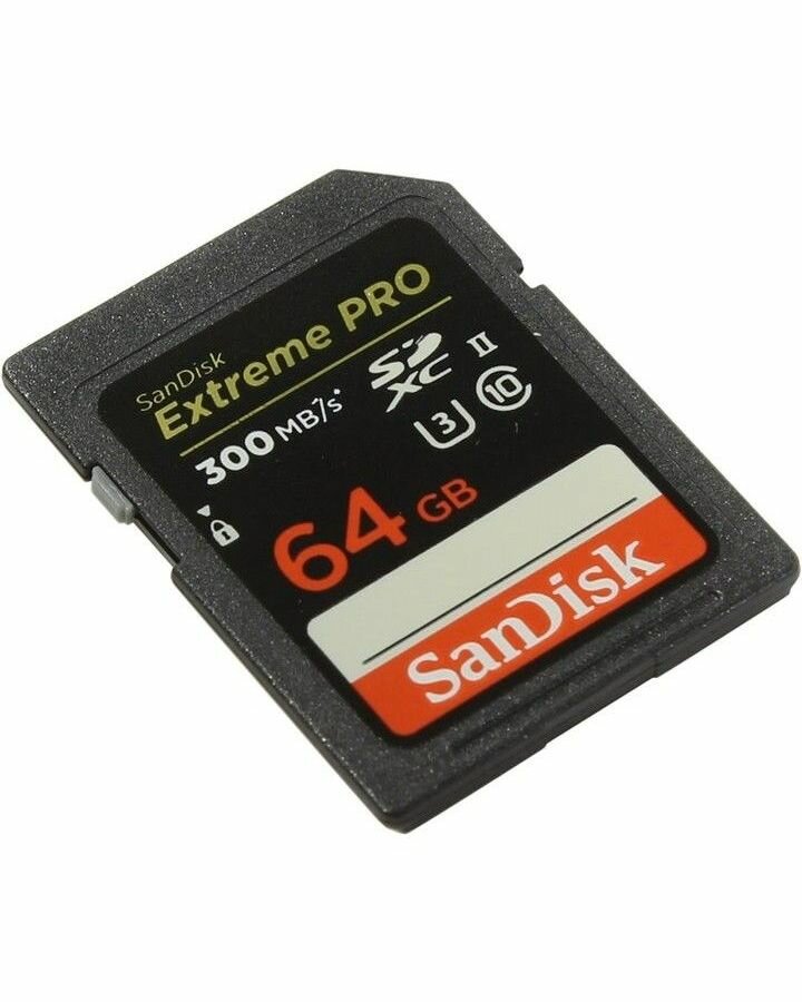 Карта памяти Extreme Pro SanDisk SDXC 64 ГБ Class 10, V30, UHS-II, R/W 300/260 МБ/с