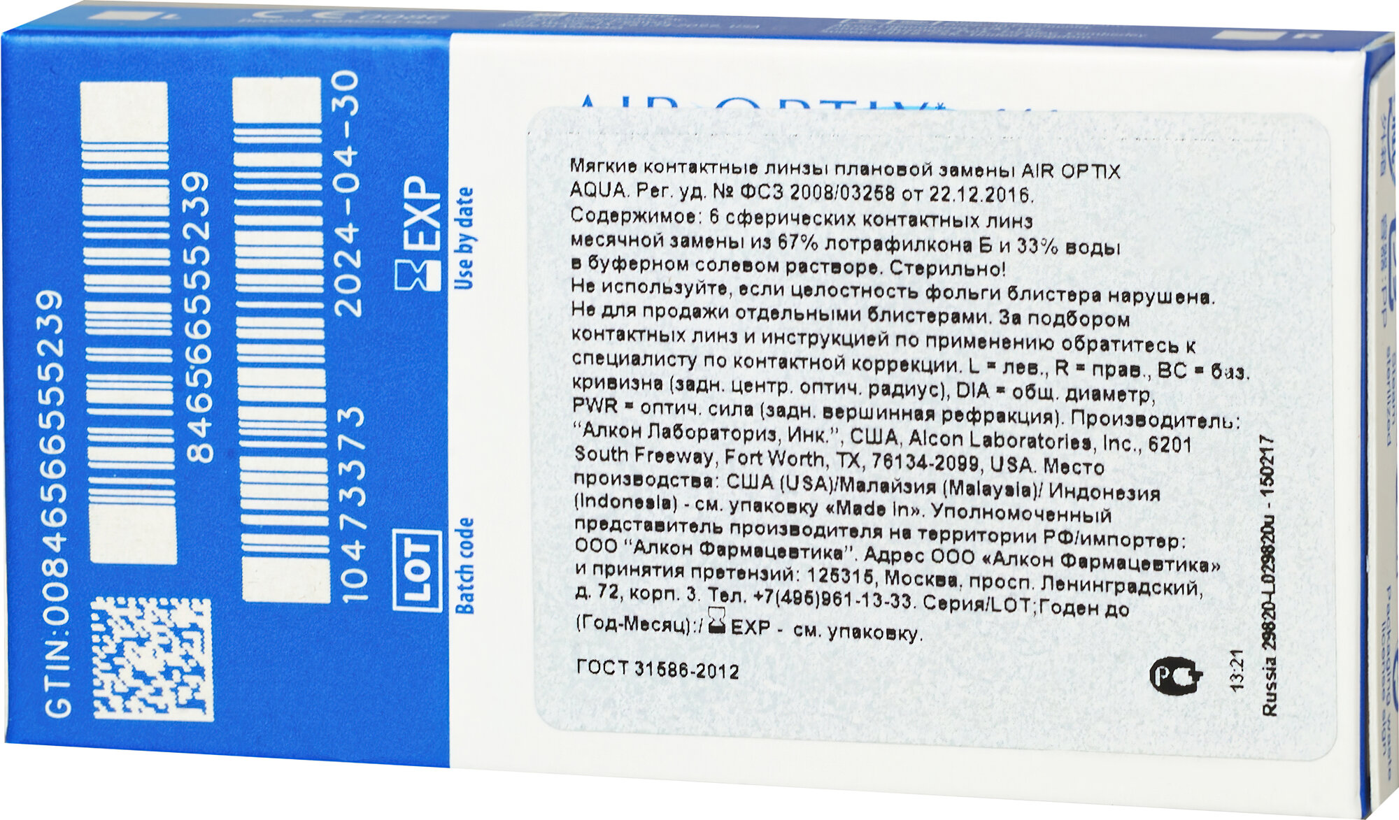| Производитель | Air Optix (Alcon) |