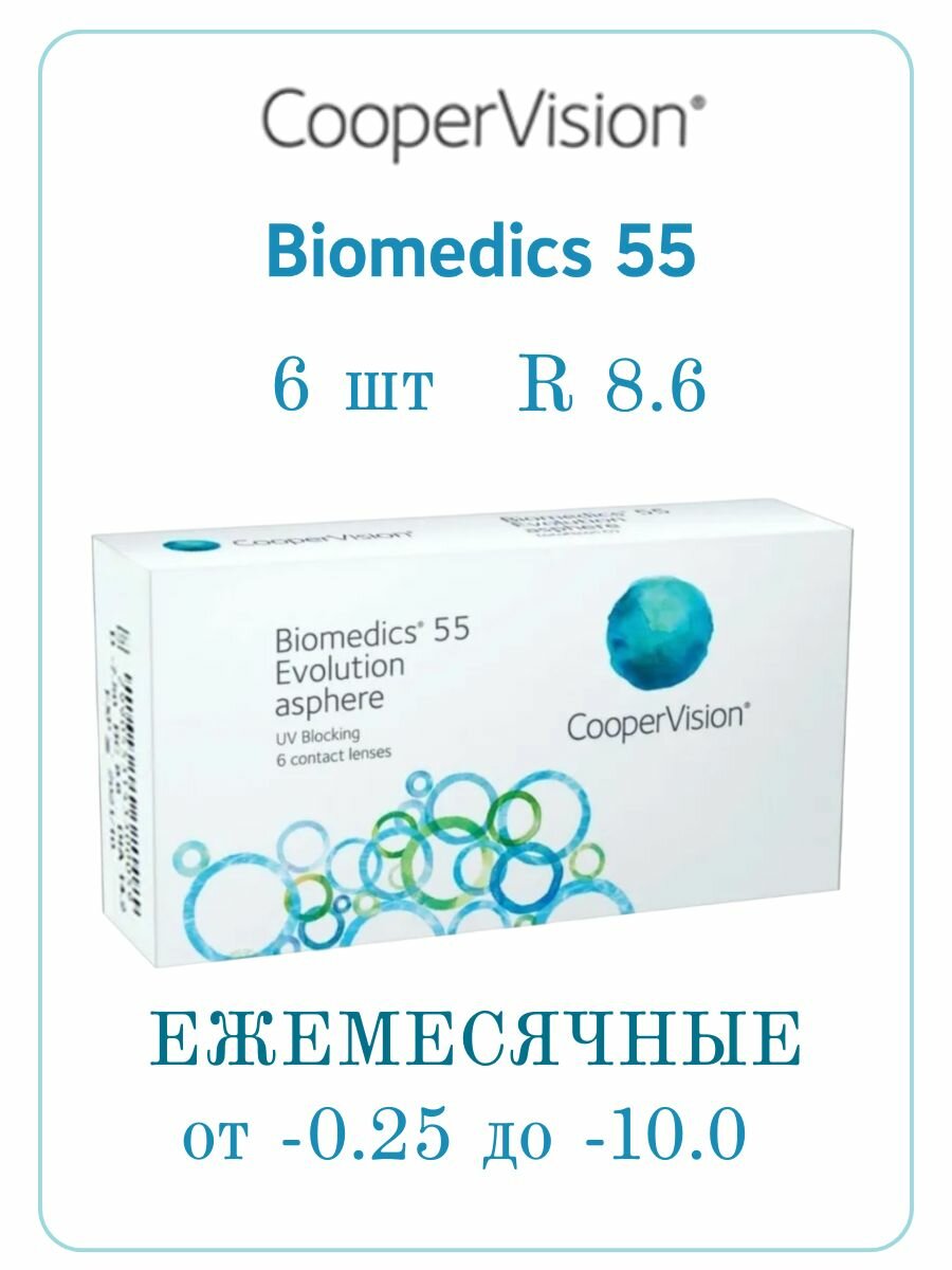 Ежемесячные контактные линзы CooperVision Biomedics 55 Evolution 6 pk (BC 8.6; D -6.50)