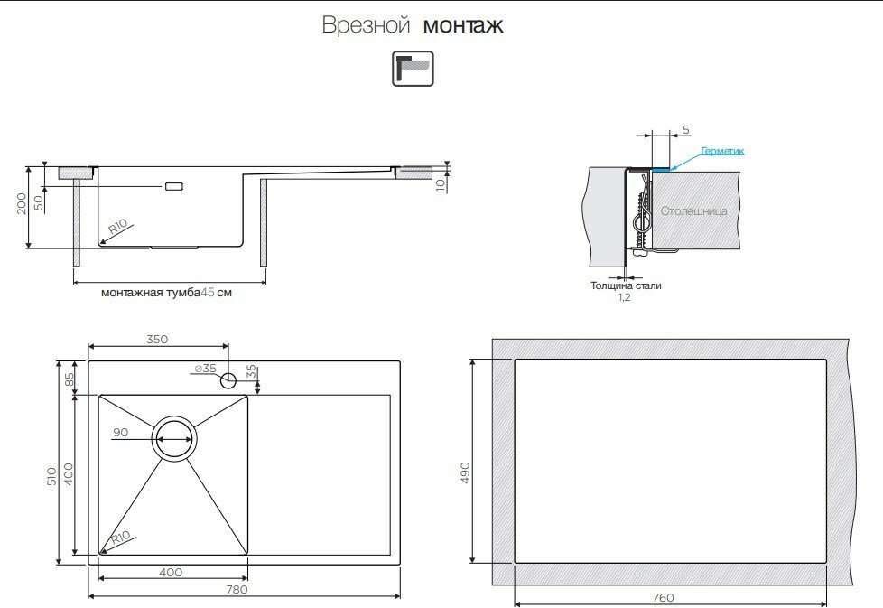 | Установка | врезная |