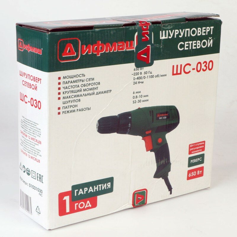 Сетевой шуруповерт Дифмаш ШС-030/650Вт, 1100 об/мин, 24 Нм.