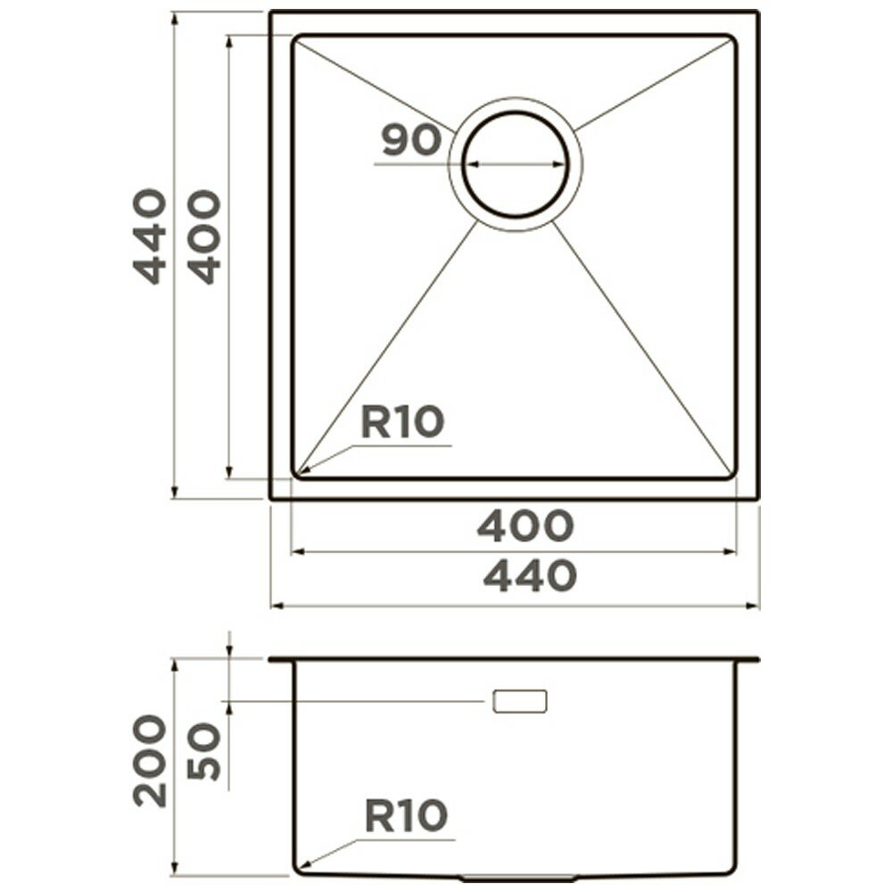 Кухонная мойка OMOIKIRI Taki 44-U/IF-IN (440 x 440 мм), врезная/вровень/подстольная, нержавеющая сталь Omoikiri 4973044