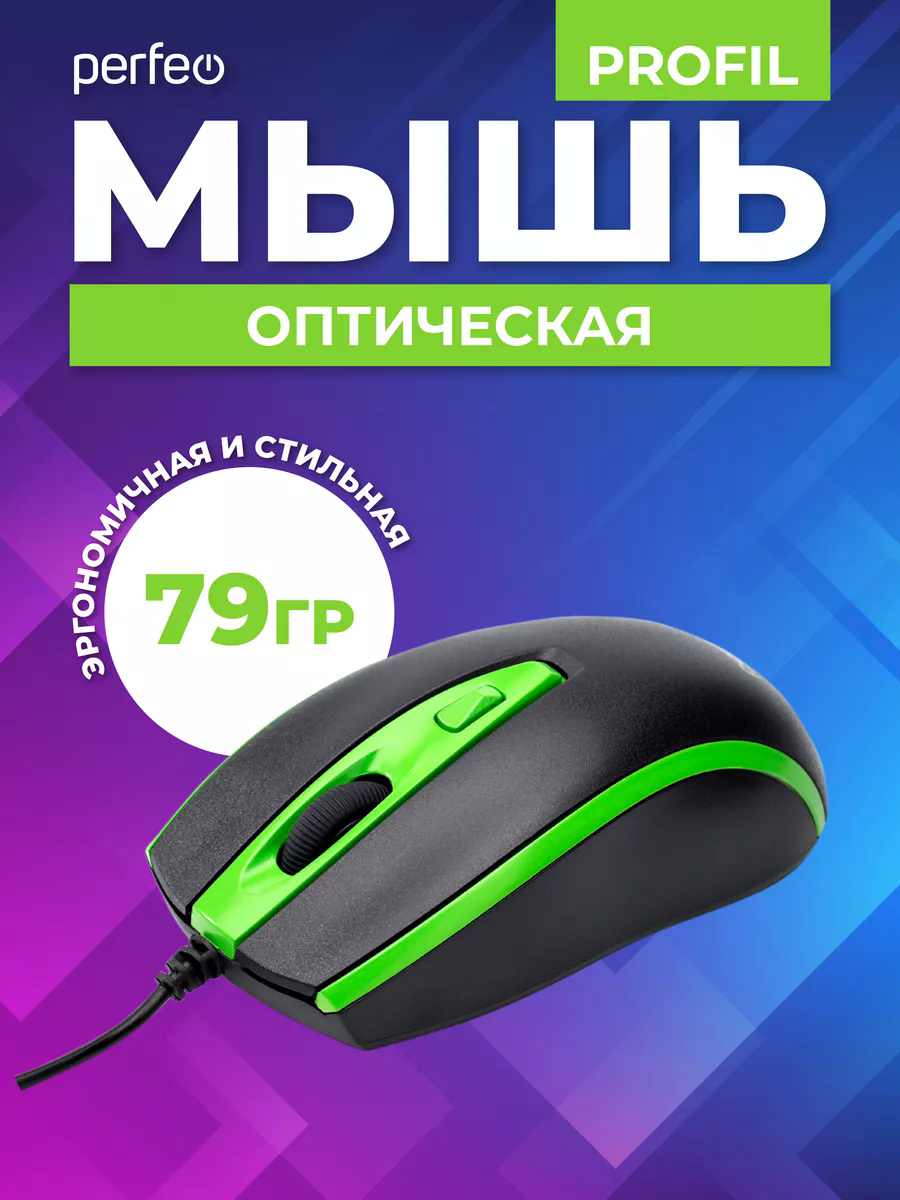 Проводная мышь Perfeo "PROFIL" (черный, зеленый)