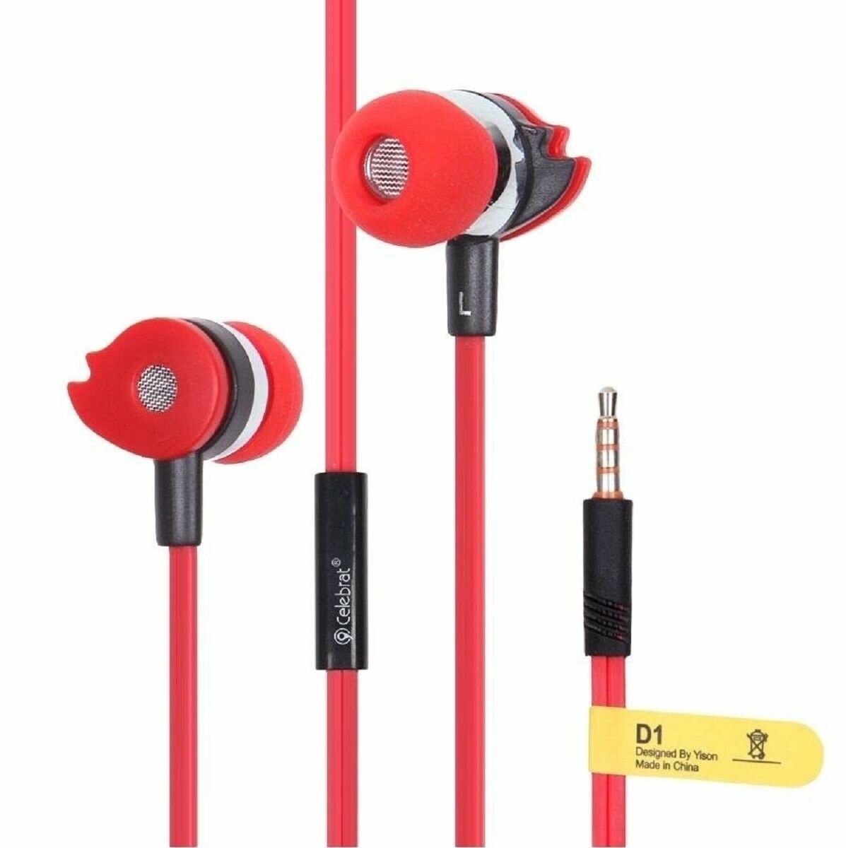 Наушники внутриканальные Celebrat D1, 1.2m, 3.5 jack,красный