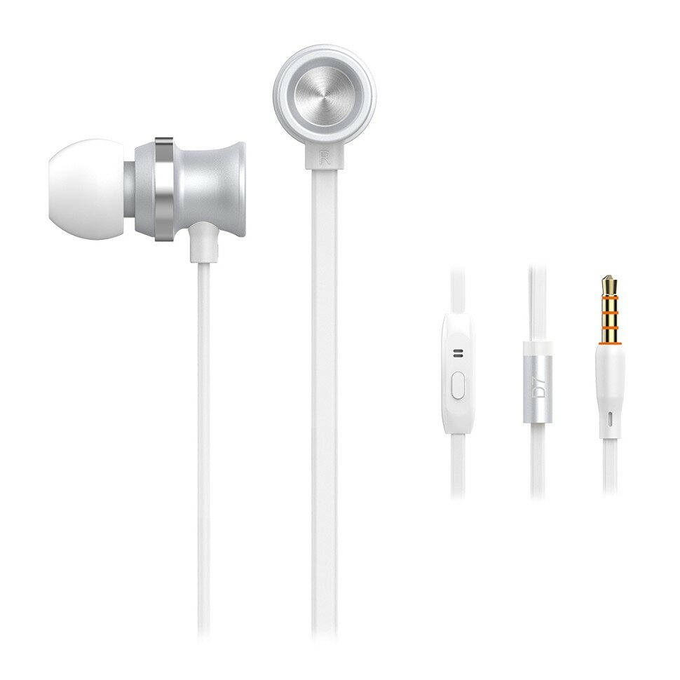 Наушники внутриканальные с микрофоном Celebrat D7, 3.5mm Audio Pin, 1,2m кабель, серебро