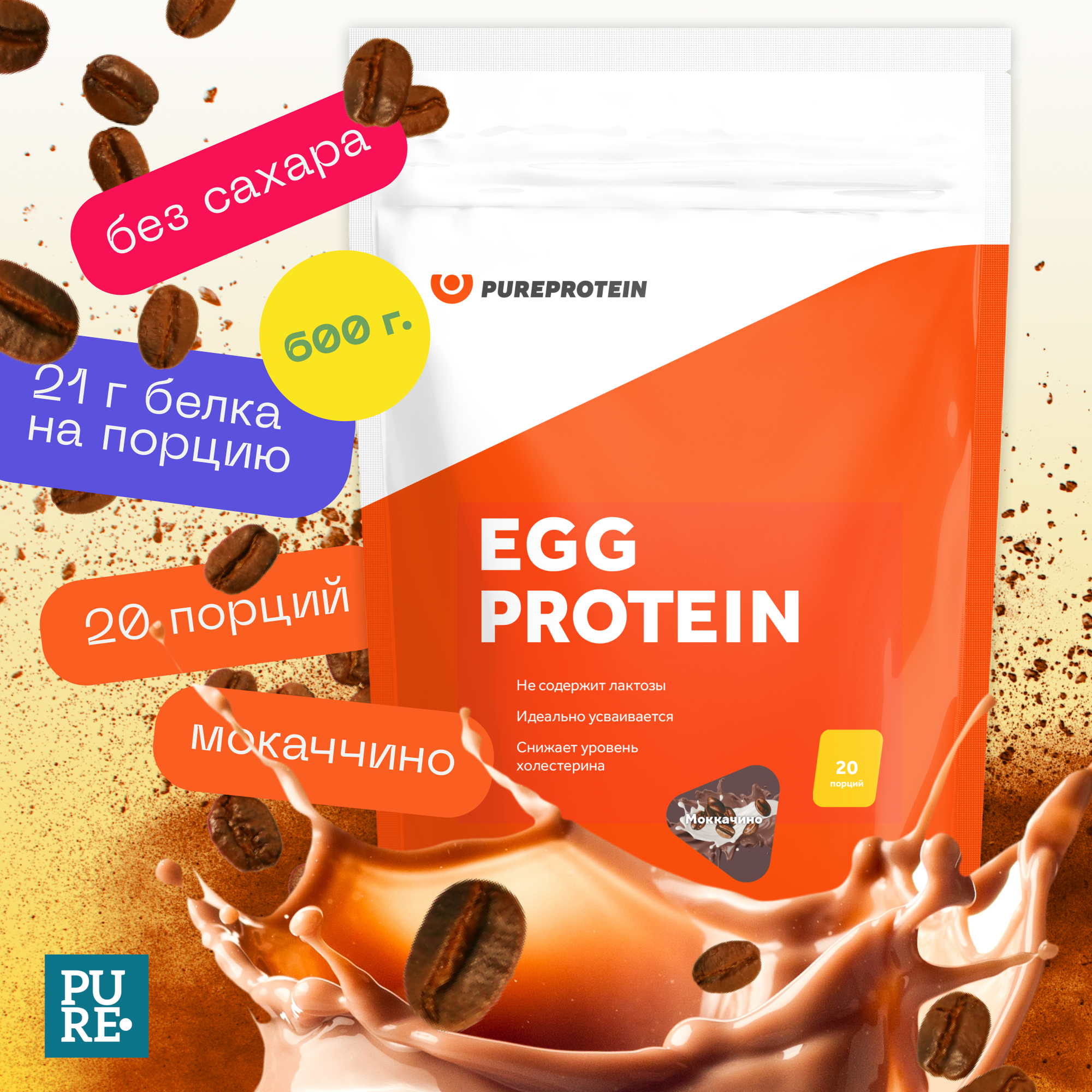 Протеин Pureprotein яичный Egg Protein Мокаччино 600г