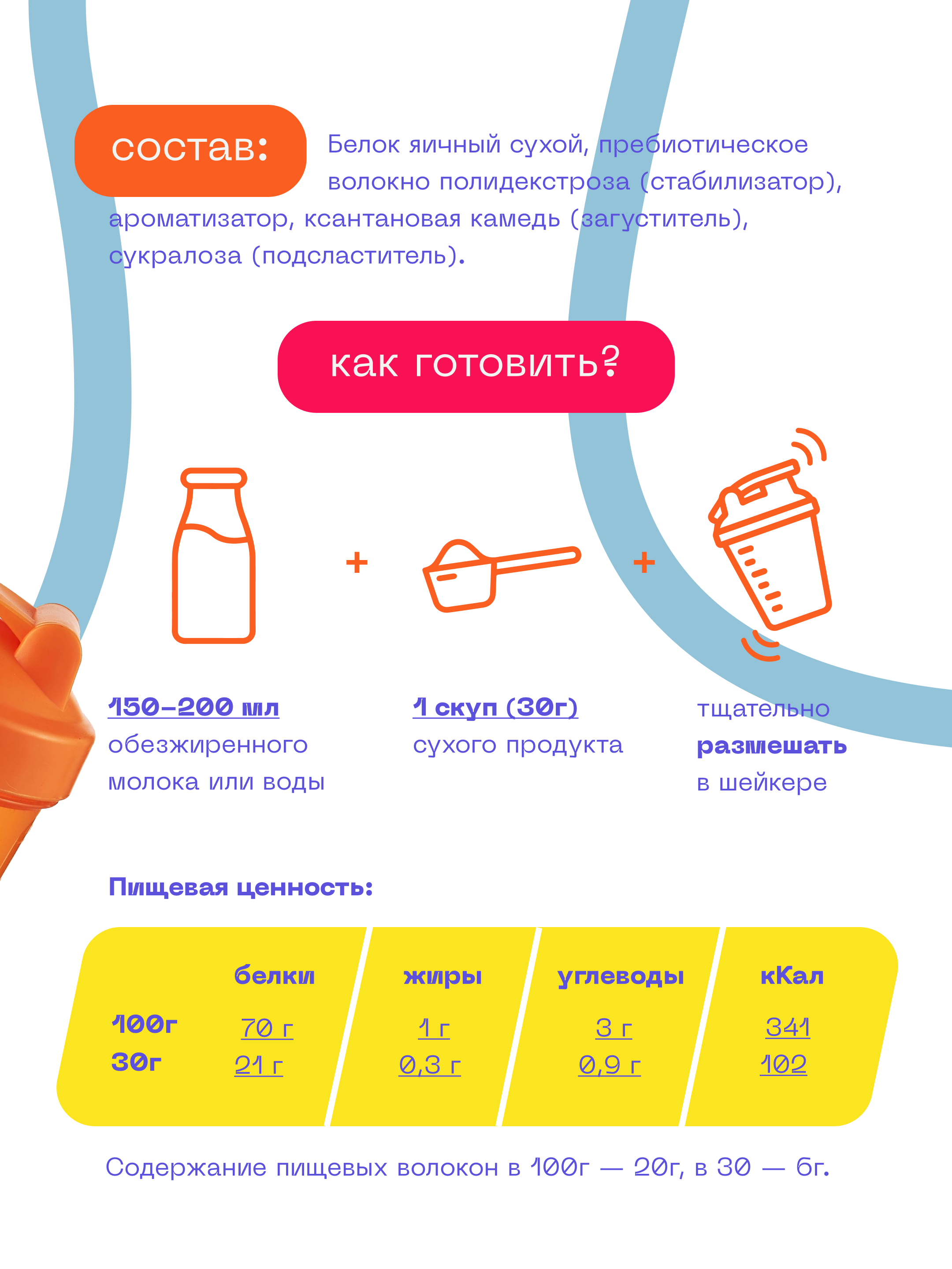 | Плюсы: | Судя по описанию яичных протеинов- полная усваиваемость. Приятный вкус, отличная цена. |