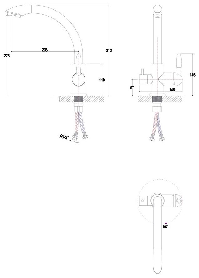 | Высота излива | 276 мм / 312 мм |