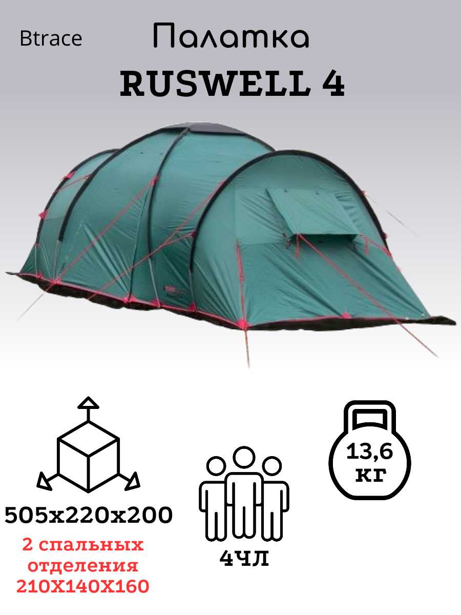 BTrace Палатка Ruswell 4 BTrace (Зеленый, )