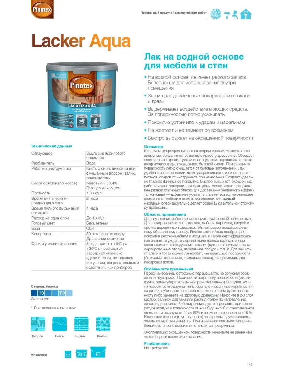 СохранитьPinotex LACKER AQUA 70 лак на водной основе для мебели и стен, д/вн.работ, глянцевый 1 л 5254084 интересное: