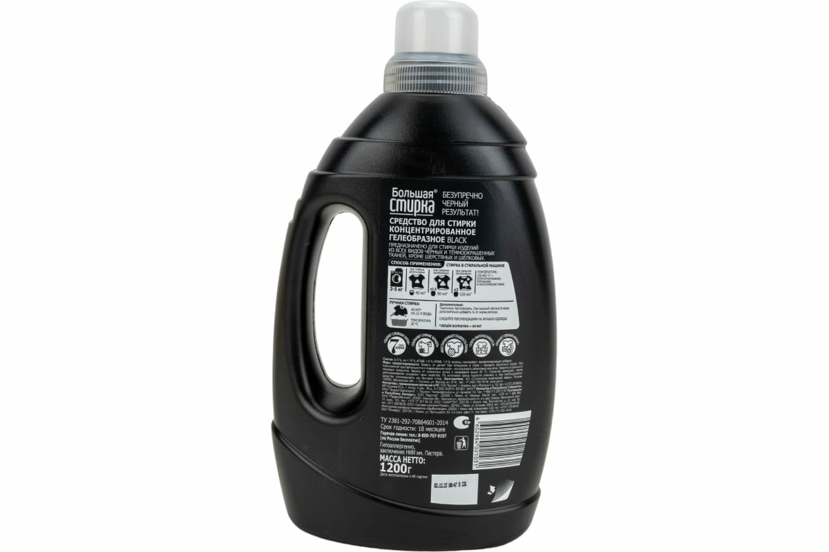 Гель для стирки Большая Стирка Black, 1.2 л, 1.31 кг, бутылка