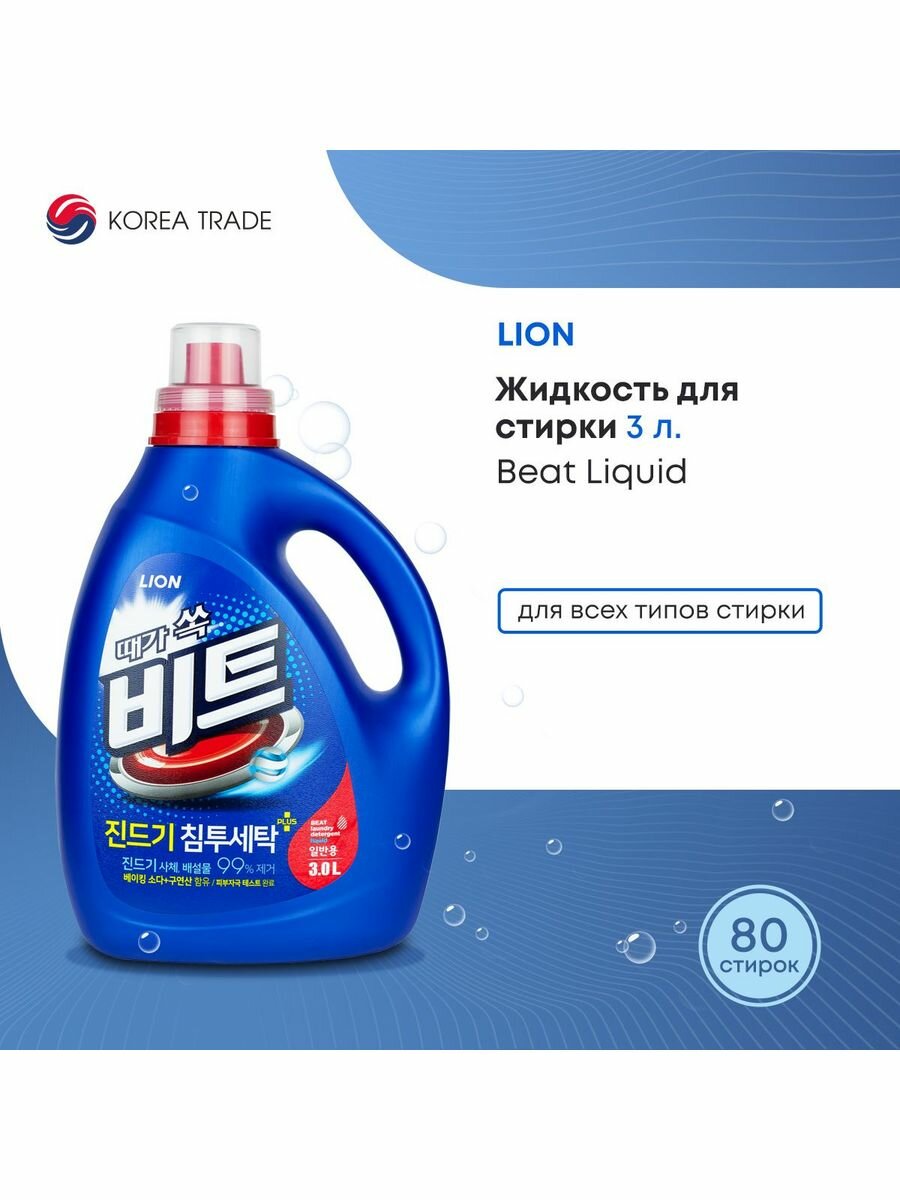 Жидкое средство LION "Beat" для ручной и автоматической стирки, флакон, 3000 мл
