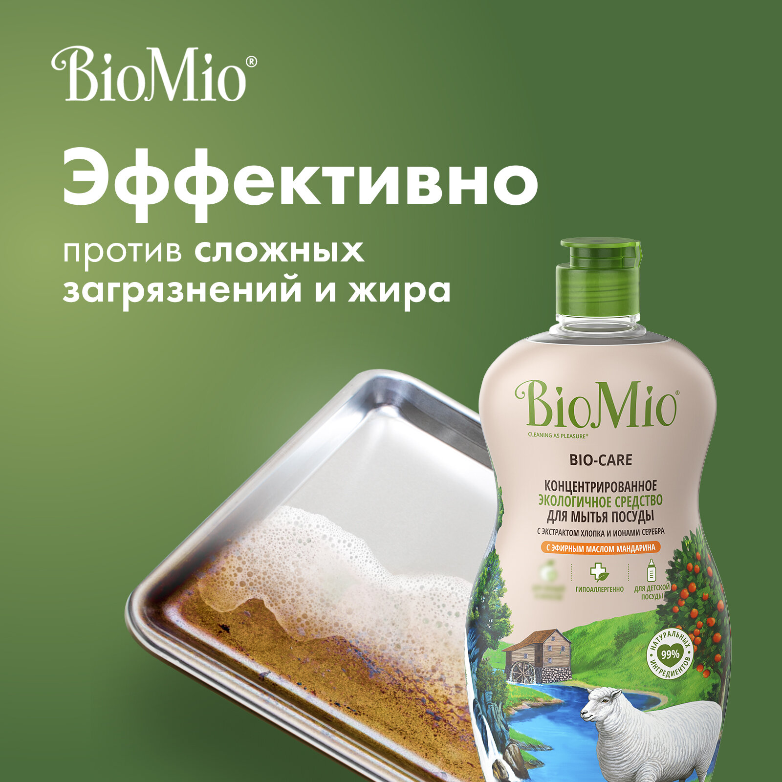 Экологичное средство для мытья посуды, в том числе детской, и продуктов BioMio, с эфирным маслом мандарина, концентрат, 450 мл (2 шт)