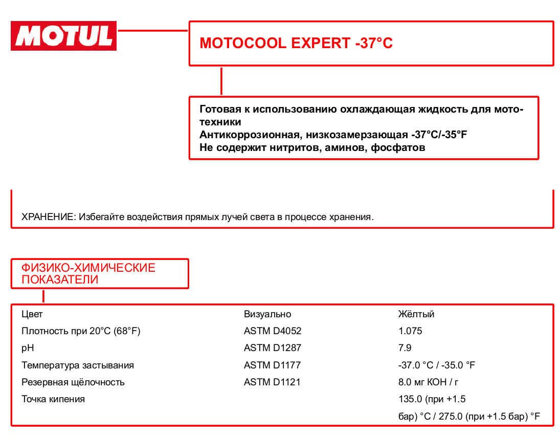 MOTUL 105914 Антифриз для мотоциклов MOTUL готовый 1л Motocool Expert -37°C желтый 1шт
