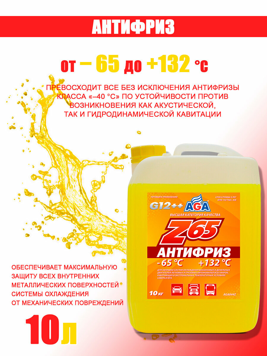AGA AGA044Z Антифриз AGA-65 044Z G12++ 10кг желтый